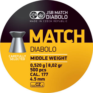 Die JSB Match Diabolo im Kaliber 4,5 mm / .177 gehören zu den beliebtesten Luftgewehr- und Luftpistolen-Geschossen im Wettkampfbereich. Mit einem Gewicht von 0,520 g sind sie optimal ausbalanciert und sorgen für höchste Schusspräzision auf kurzen und mittleren Distanzen.