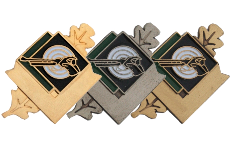 Das Motiv dieser Nadel ist eine Pistole vor einer Schießscheibe. Rückseitig ist sie mit einer Sicherheitsnadel versehen. Lieferbar ist die Schützennadel in gold, silber und bronze. Hier bestellen Sie jede Farbe einzeln und können bei jeder Farbe einen anderen Text angeben.